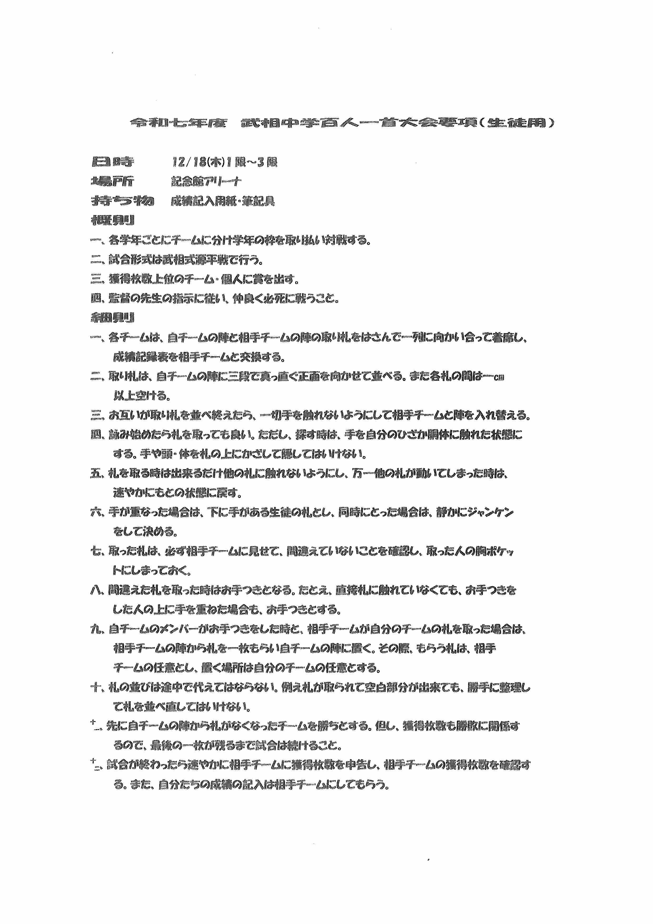12月18日(木)に中学全学年で百人一首大会を行いました。