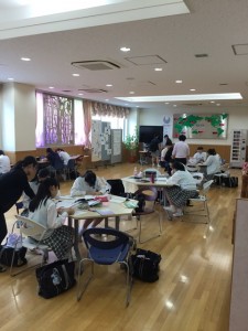 その後、部屋割り発表、夕食、自由時間(研修会場にて質疑応答・交流の場)とあっという間に時間が過ぎていきました。ホテルの部屋割り発表では皆、初対面のペアの人にドキドキでした。夕食後の自由時間には友達の輪を広げようと多数の生徒が開放会場へ足を運んで各々交流していました。