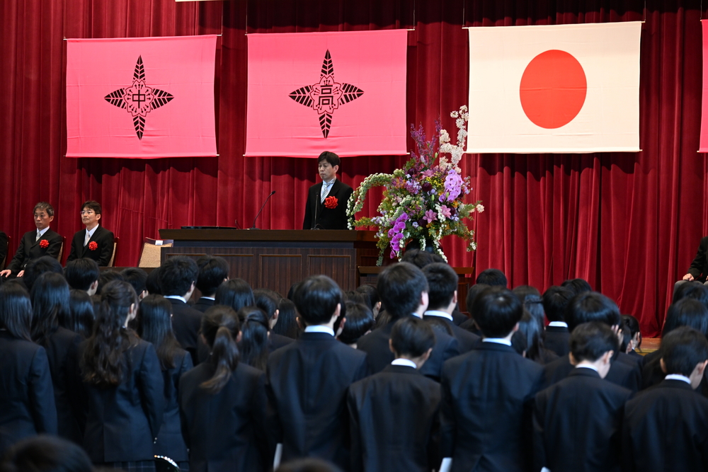 今年度は、高校624名、中学128名の新入生を新たに迎え入れました。特に高校は例年よりもクラス数が増え、校内はかつてないほどの活気と、新しい出会いへの期待に満ちた賑やかな空気に包まれていました。大講堂で行われた入学式には、多数のご来賓や保護者の皆様にご臨席いただき、厳粛ながらも温かな雰囲気の中で式が進行しました。