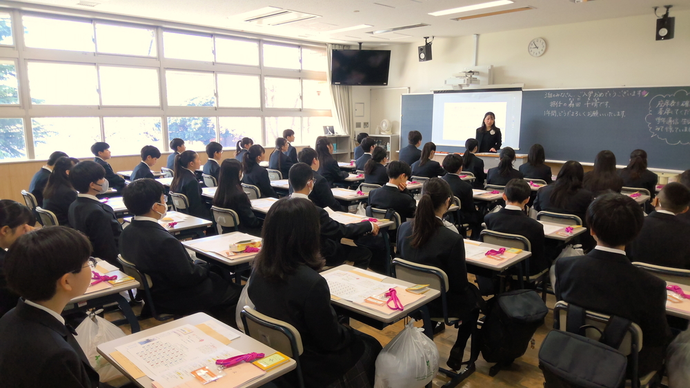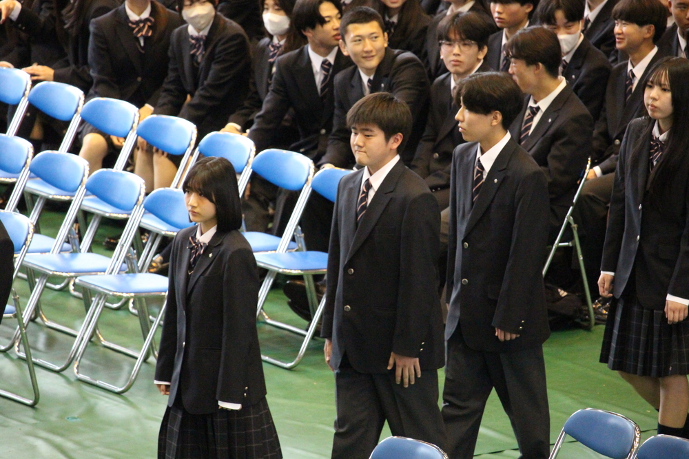 式の中では、新入生代表による「誓いの言葉」が述べられました。高校生代表として13組の内藤健介さん、中学生代表として1組の武田佳之さんが登壇し、これからの学校生活に向けて、大いなる希望と学びへの意気込みを力強く語ってくれました。その堂々とした姿からは、新たな環境で飛躍しようとする強い決意が感じられ、参列者一同がその未来に大きな期待を抱きました。式終了後には、新担任の先生の誘導のもとで各教室へ移動し、初めてのホームルームが行われました。初めは緊張で硬い表情を見せていた生徒たちも、クラスメイトと言葉を交わすうちに徐々に打ち解け、教室のあちこちで楽しそうな会話が弾んでいました。内進生・外進生という垣根を超え、すでに新しい絆が芽生え始めている様子が非常に印象的でした。