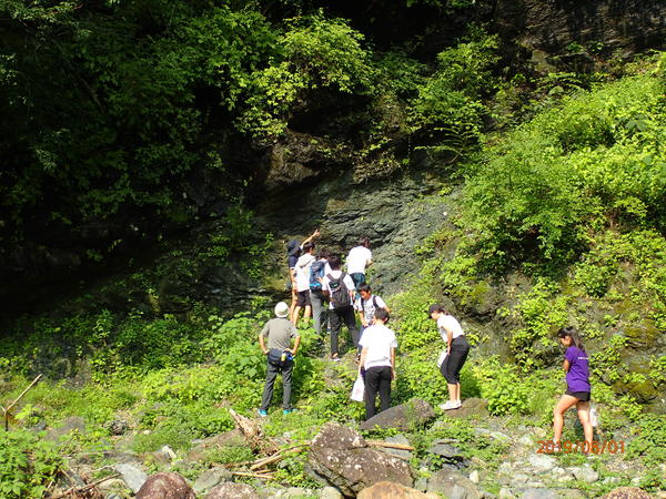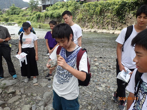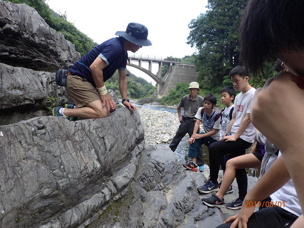 「ジオパーク」めぐりでは、高校の地学の先生をしていらした自然観察員さんにとてもわかりやすく地層や岩石の説明をしてもらいました。教科書に書いてあったことに生徒は「そういうことだったのか」と納得する場面もありました。