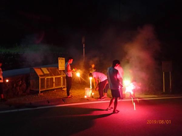 夜は、山里で花火を楽しみました。満点の星も大きく見えました。街灯にはクワガタやカブトムシが寄ってきていました。東京ではあまり見られない光景に生徒たちはとても盛り上がっていました。