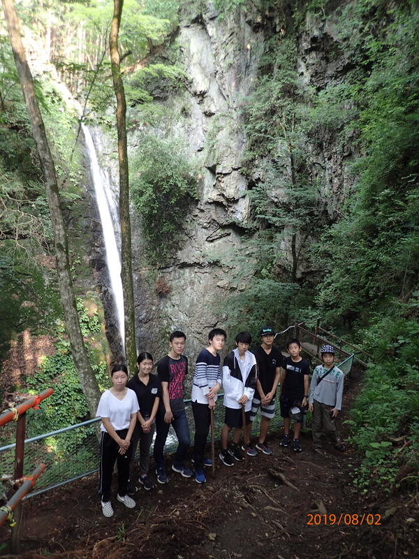 朝の散歩は南牧村3名瀑の一つ線ヶ滝です。滝壺まで降りマイナスイオンも沢山浴びました。御柱祭で使用する杉の木を伐り出す場所もこのそばにありました。