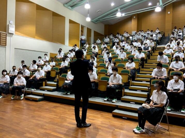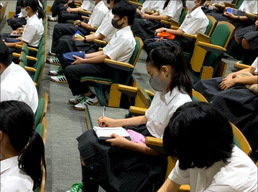 1学期ではオンラインにて理事長講座を行いましたが、今回は密にならないよう最大限の対策を施した上で、対面にて行いました。