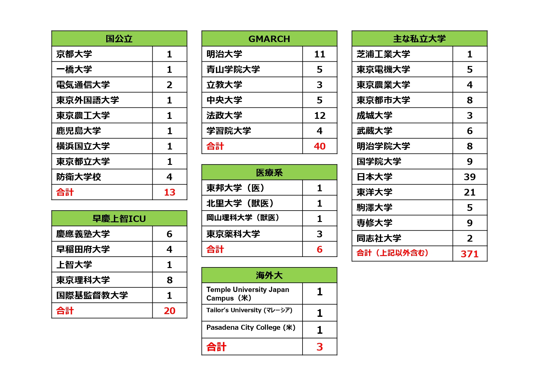 2022年度 大学合格速報(令和5年4月4日現在) 投稿 2023年03月24日 16:41 郁文館高等学校 2022年度大学合格実績 (卒業生数:251名) 郁文館グローバル高等学校 2022年度大学合格実績 (卒業生数:78名) ※既卒生の合格結果含む ※合格結果は随時更新します lineで送る シェアする ポストする メールで送る