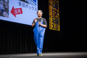 八方さんは、自身の夢である「漁師」の正装でステージに登場しました。