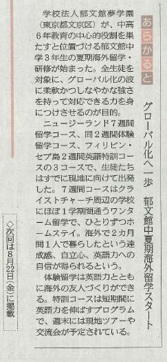郁文館中学校の取り組みが産経新聞で紹介されました