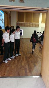 郁文館の学校説明会は、生徒も頑張っちゃいます!今回も中学3年生の有志が受付や案内、スクールツアーのガイドなどで中学説明会をお手伝いしました。また、説明会の冒頭では、夏休みに行われた海外研修の成果発表も行いました。終わってからは「ちゃんと案内できてよかったあ~」、「僕の説明で保護者の方のハートをばっちりつかみましたよ!(笑)」など、安堵と余裕(?)の声を聞くことができました。