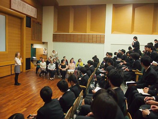 私たちグローバル高校生は怒涛の質問ラッシュが得意技!しかし、あちらも負けてはいません。「日本の学校ではどんなアクティヴィティがあるの?」「マトリョーシカってこけしの子供なのよ、知ってた?」幾多もの質問が講堂内に飛び交います!