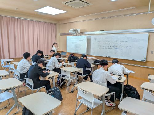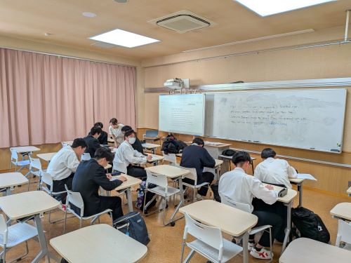 英語のハイレベル講習。高3の教科担当が放課後に、意欲ある生徒とともに難問にチャレンジします。真剣かつなごやかな雰囲気です。