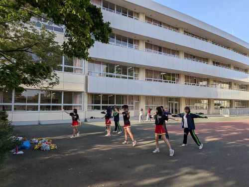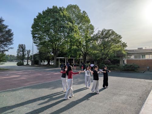 美しくかわいらしい、でもその運動量は相当なものです。個性豊かなウェアを身にまとい、新歓ライブに向けて練習中。