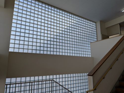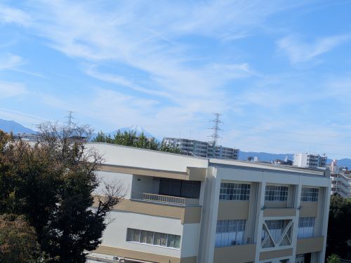 校舎西側の階段からは少し白くなった富士山と、奥多摩の山々がとてもきれいに見えます。ここからの眺めは武蔵野の四季の移り変わりを感じさせてくれるものです。校舎内の中央階段のガラス窓、職員室前の学習机周辺にはやわらかな秋の光が満ちています。
