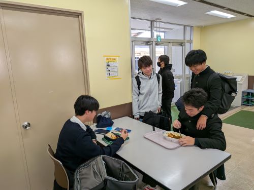 食堂のにぎわい(今日の定食は鶏の唐揚げです)、校舎内外で遊んだり話したりしている生徒たち、再開された部・同好会活動、いつもの明法生活がもどってきました。