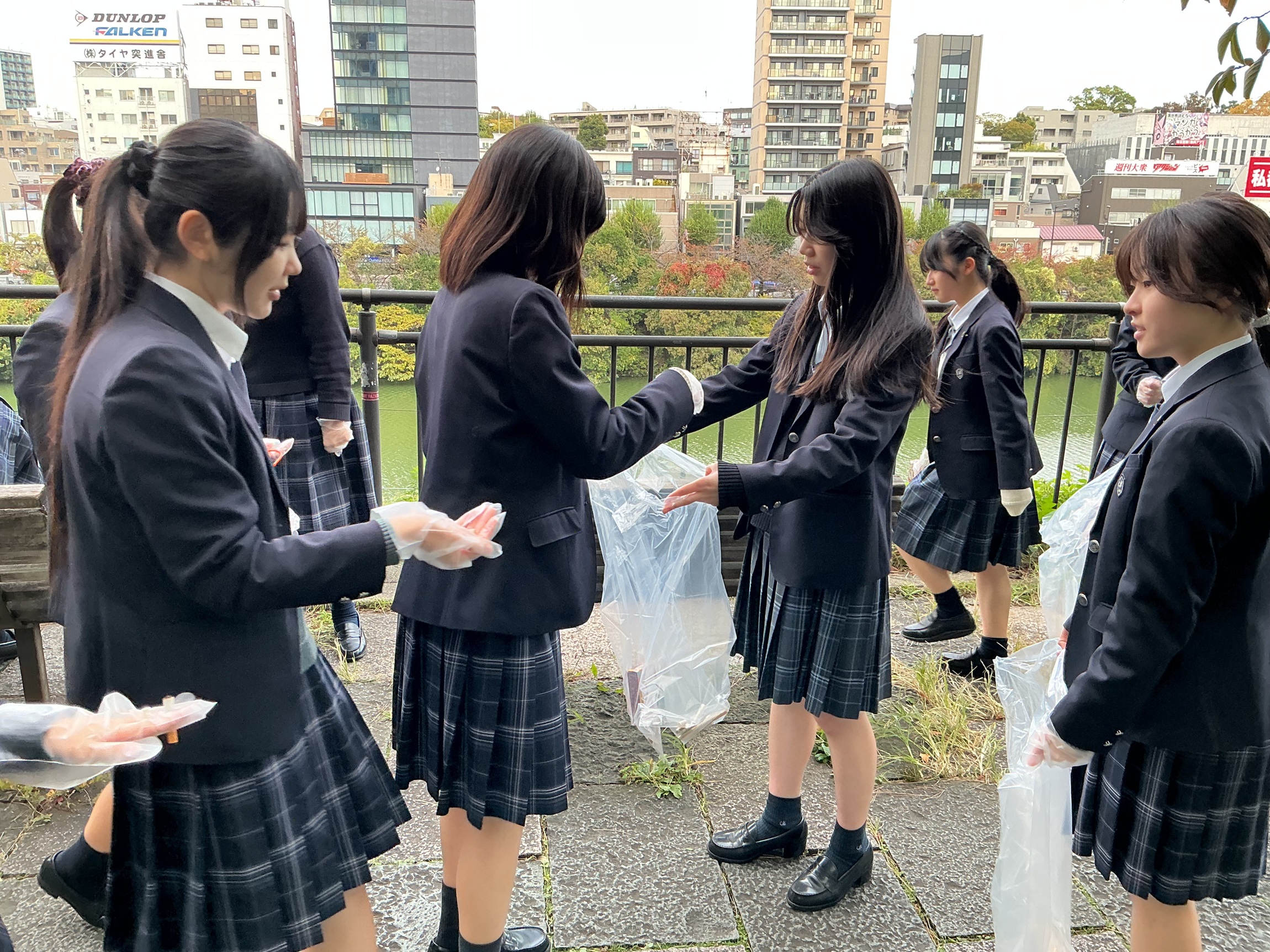 11月5日(水)、朝礼前の時間を利用して千代田区一斉清掃に参加しました。学校周辺の道路や外濠公園を中心に、中1~高2までの有志で活動を行いました。