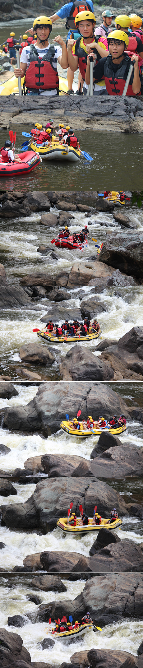 ラフティングはバロン川を下っていきます。みんなで協力しながら船を漕いでいきました。大自然の景色を堪能しながらのラフティングは生徒たちに好評でした。