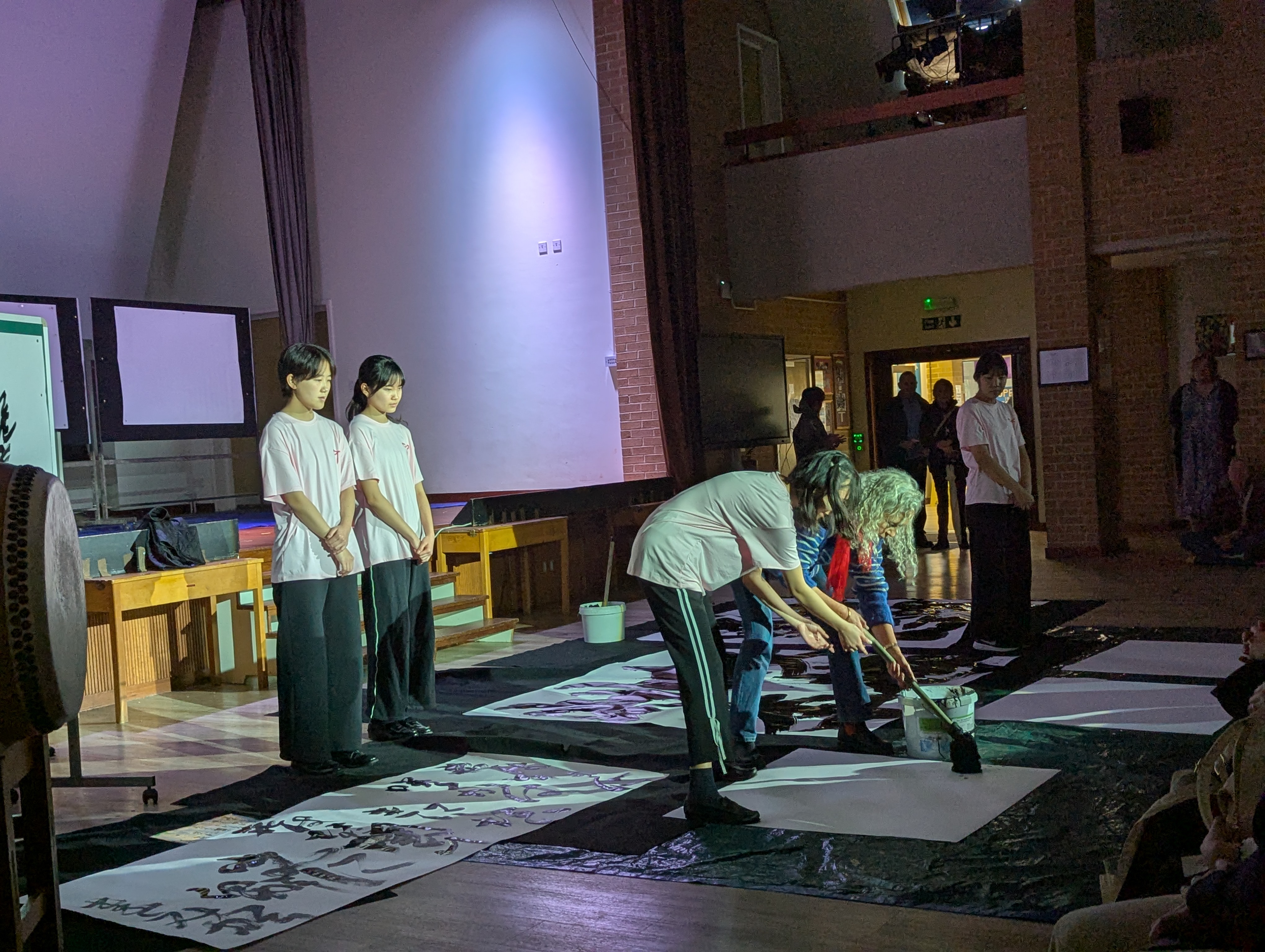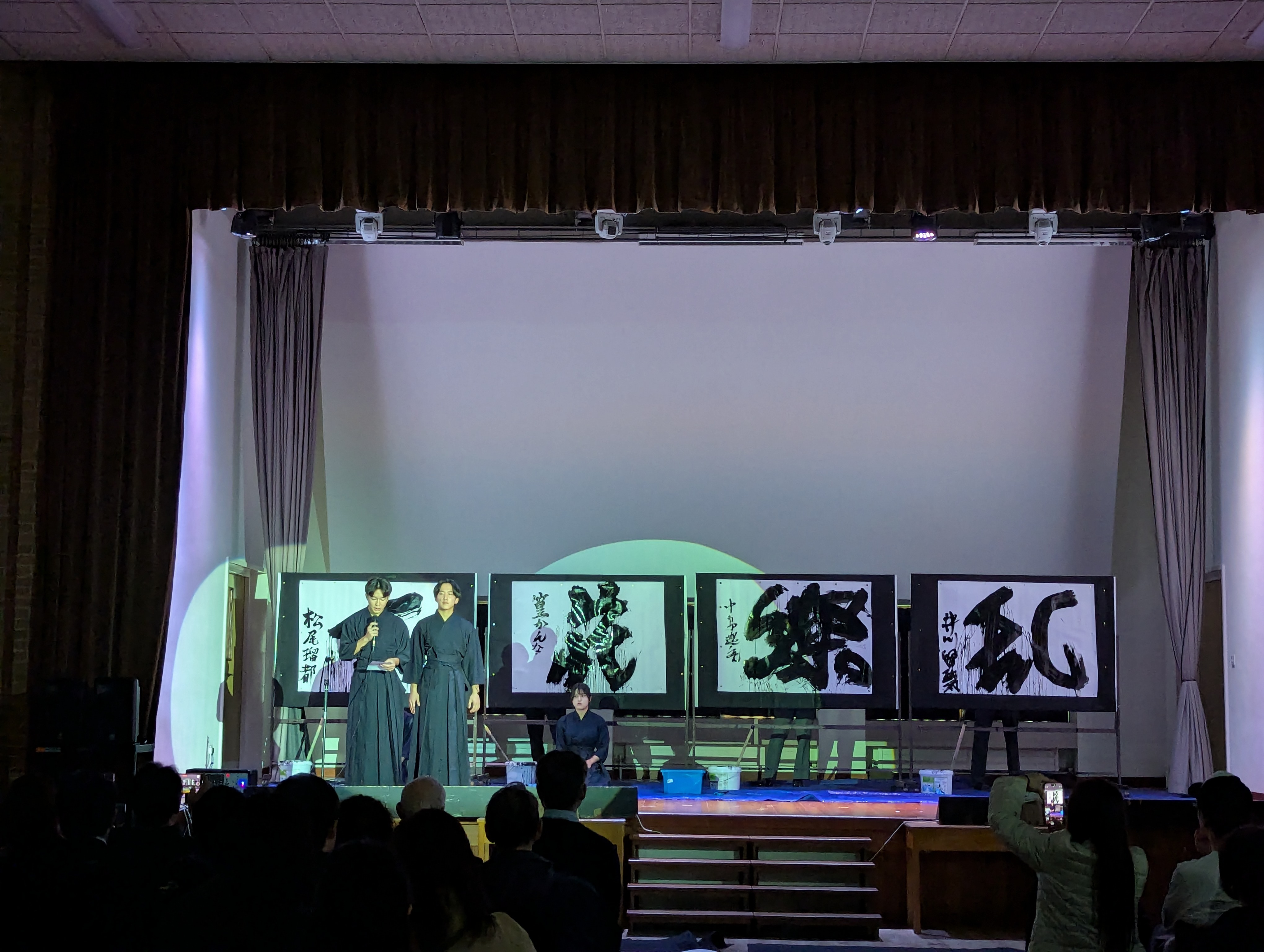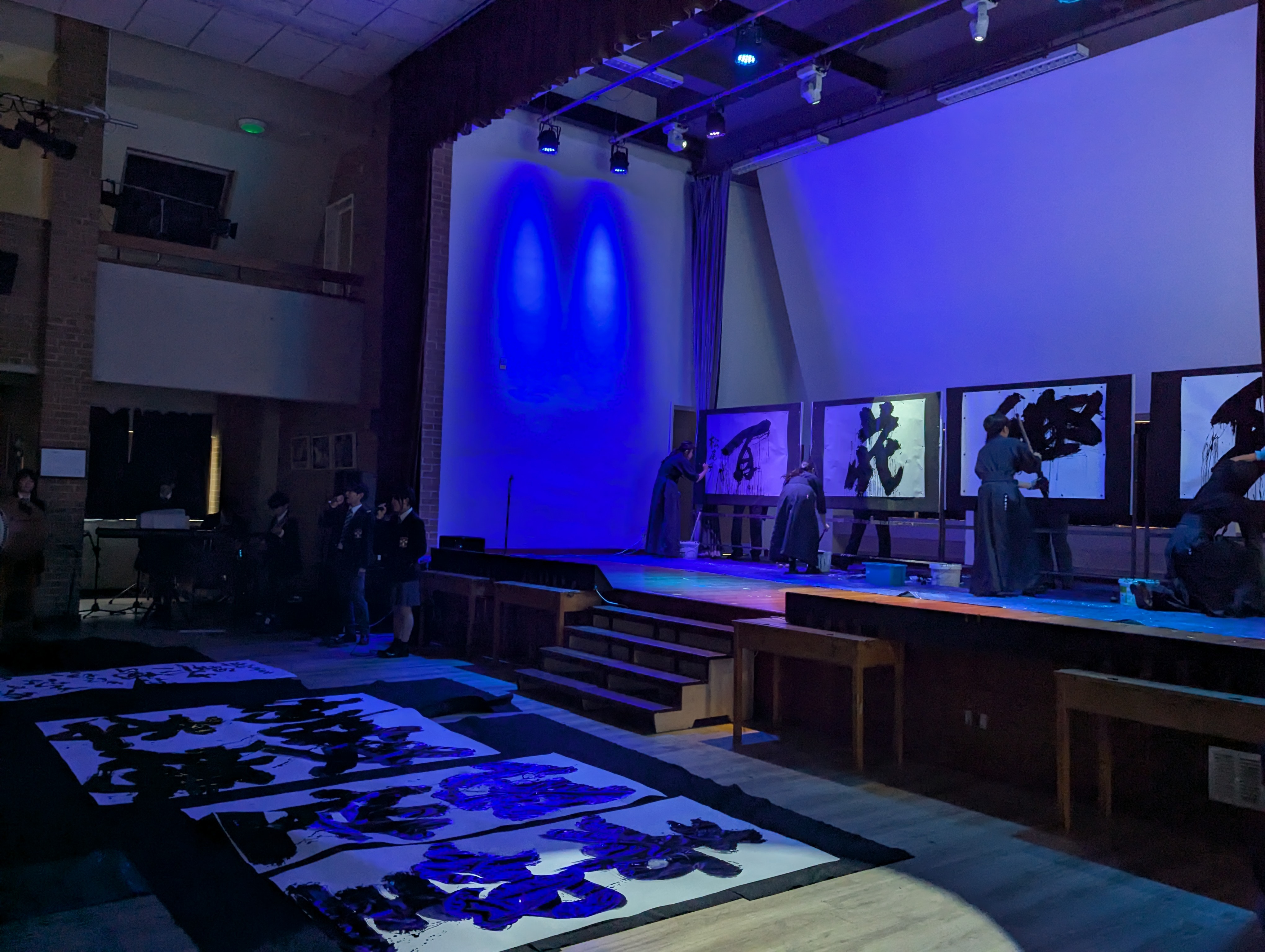 ソーランに引き続き、芸術書道クラスの生徒、および書道科教員による書道パフォーマンスを実演しました。