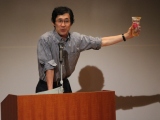 | 具体例をあげて学科の説明をされる風間副学長。 | 入試課の方も「近いというメリットを是非活かして」と呼びかけました。 |