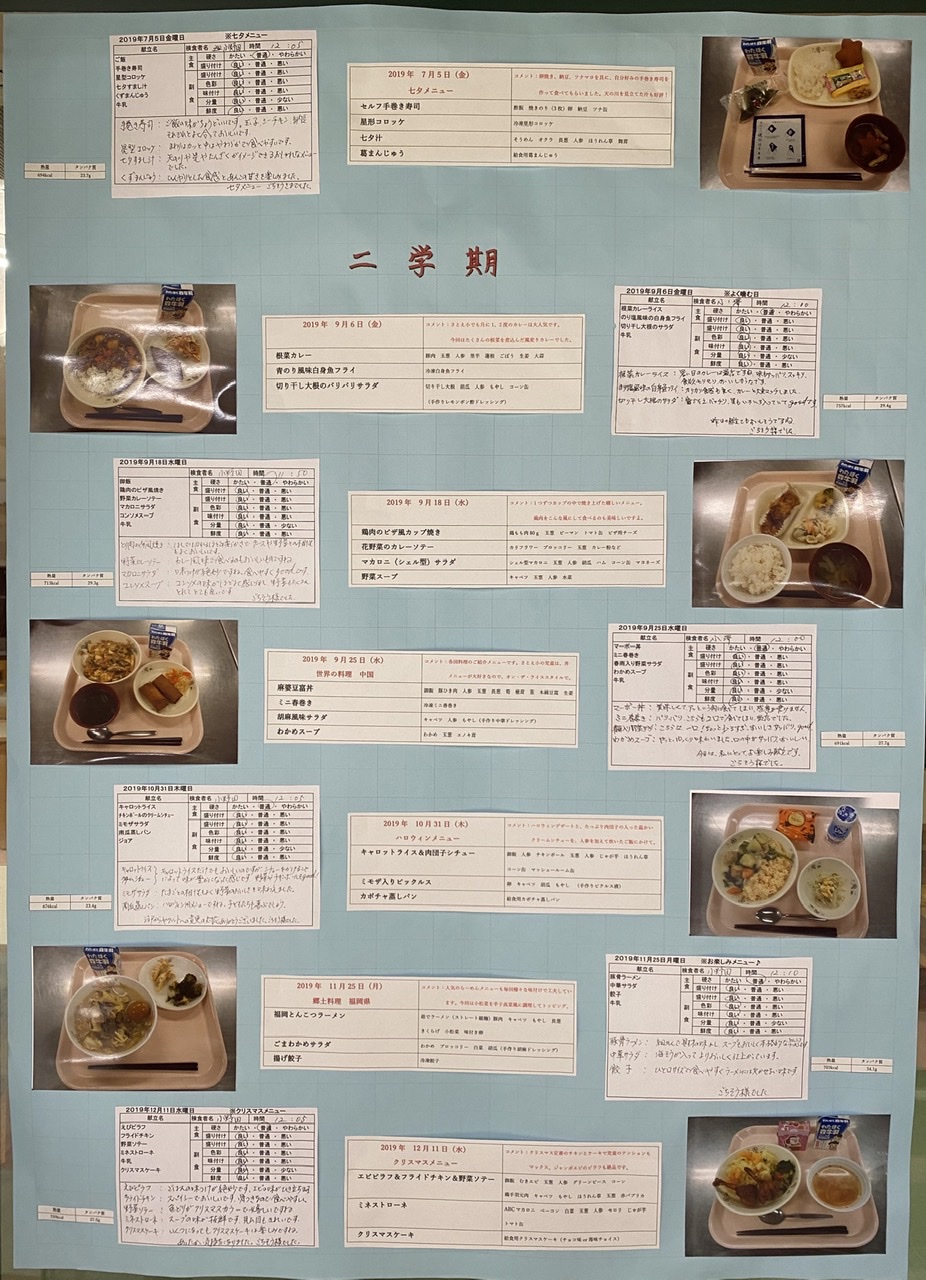 給食紹介ポスター 投稿 2020年05月29日 14:44 5月28日(木) 本校の食堂「Buono」の方々が さとえ学園小学校の 給食メニュー紹介ポスターを 作ってくれました。 ポスターには 昨年度の人気給食メニューや イベントや食育についても 書かれています。 残念ながら給食の開始は もう少し先になりそうですが 学校に登校したらぜひ このポスターを見て くださいね! lineで送る シェアする ポストする メールで送る