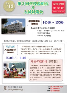入試対策会は、小学6年生対象の勉強会で、今回の教科は、算数です。小学6年生の皆様に毎年大好評のイベントとなっております。詳細は、本校HP http://www.jsh.seibi.ac.jp/をご覧下さい。