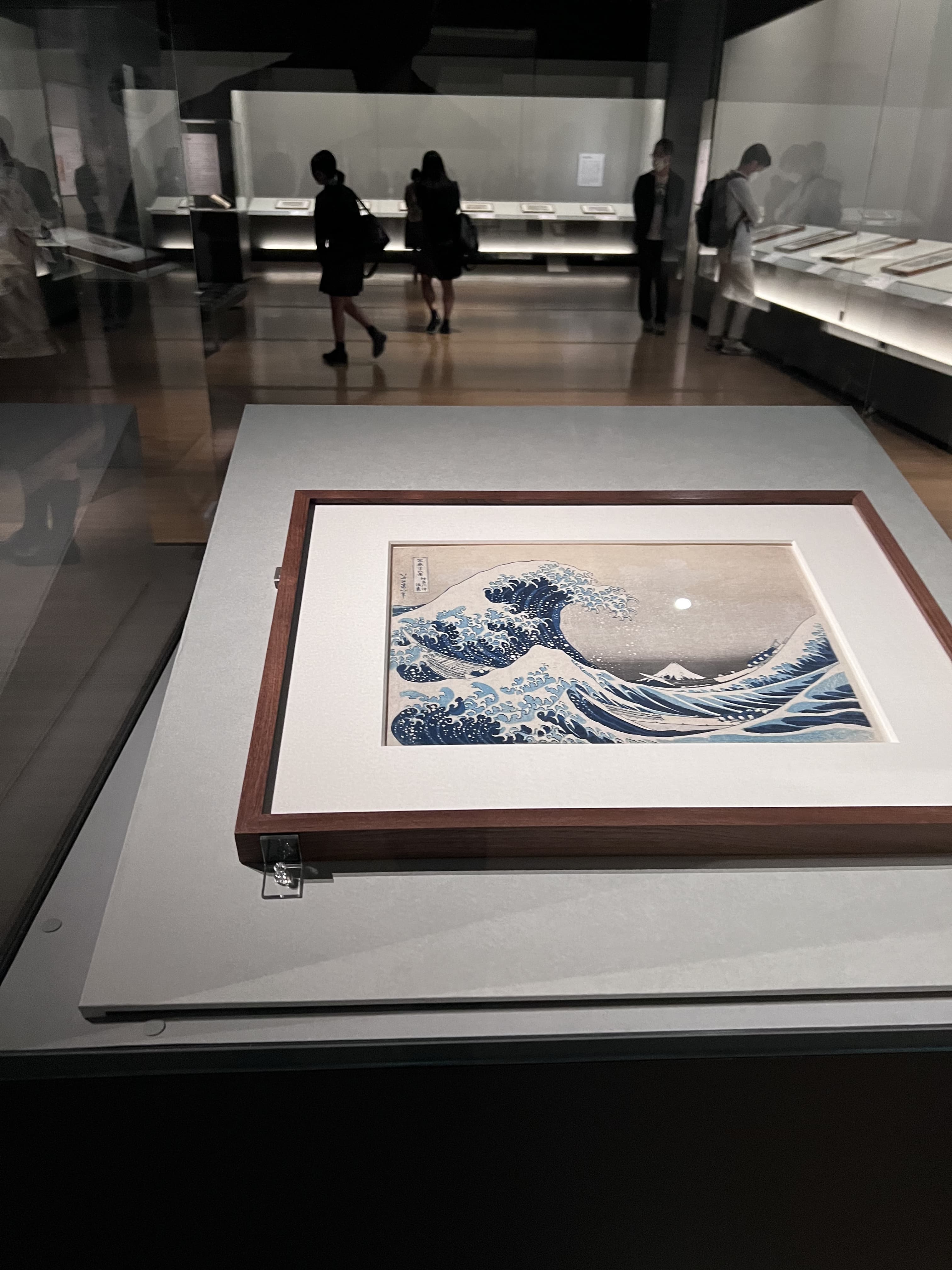 森美術館では現代アート集団『chimpom』の展示を鑑賞し、サントリー美術館では葛飾北斎の作品を見ました。2つの美術館を周り、生徒たちは、chimpomの現代の美術表現と葛飾北斎の正統的な日本画の世界観のギャップ等から、様々な芸術表現の幅や可能性を感じ取っている様子でした。このような本物との出会いを通して、作品から刺激を受け自分なりの答えを出すことなど、後の作品制作や美術の深み、面白さに繋がると良いです。
